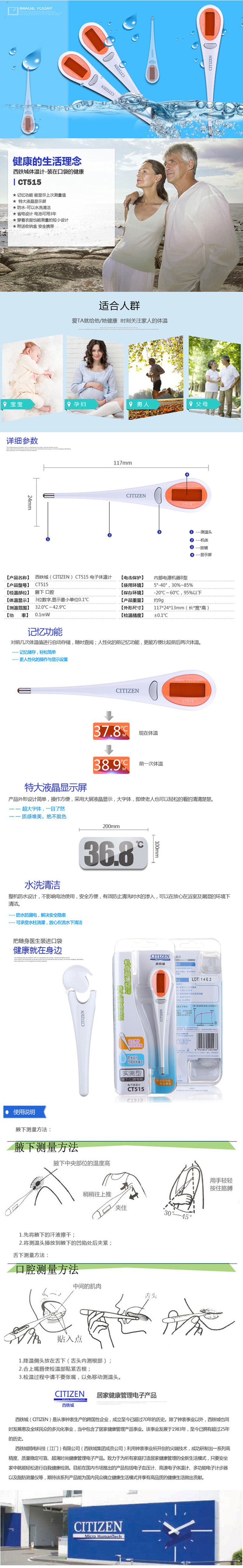 西铁城 电子体温计CT515